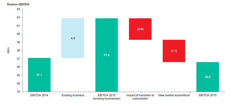 This investment is going to have significant impacts on financial performance over the next few years. You can already see the impact of this for the 2015 financial year in the bridge that was provided by the company in the results presentation. Absent the investment, the company’s steady growth rate was maintained. However, EBITDA actually declined with the investment taken into account.